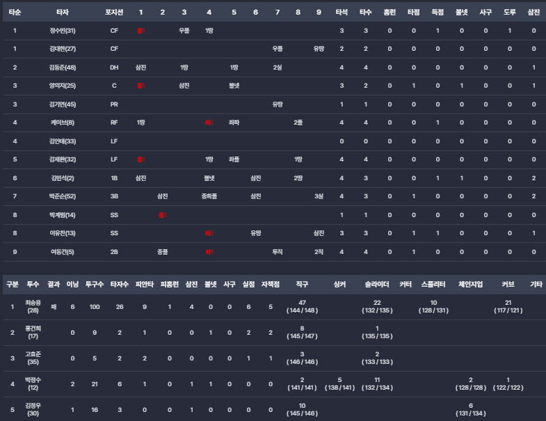 - 불펜진(홍건희, 고효준, 박정수 등): 6~7회 대량 실점으로 경기를 어렵게 했습니다.