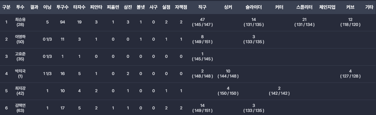 2차전 타자/투수기록
