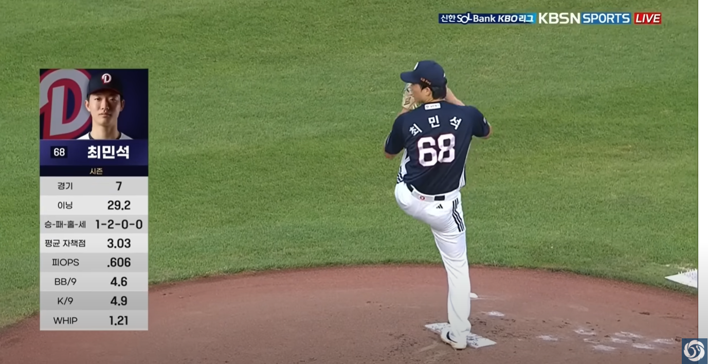 - 선발 최민석이 5회말 대량 실점을 허용하며 흐름을 내줬습니다.