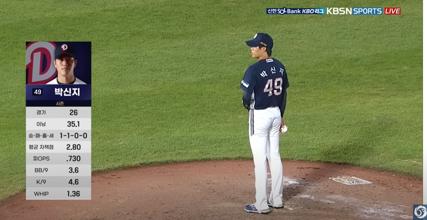 - 6~7회 추격: 6회초 정수빈 2루타와 양의지 적시타로 1점, 7회초 오명진의 솔로포로 3-4까지 따라붙었습니다.
