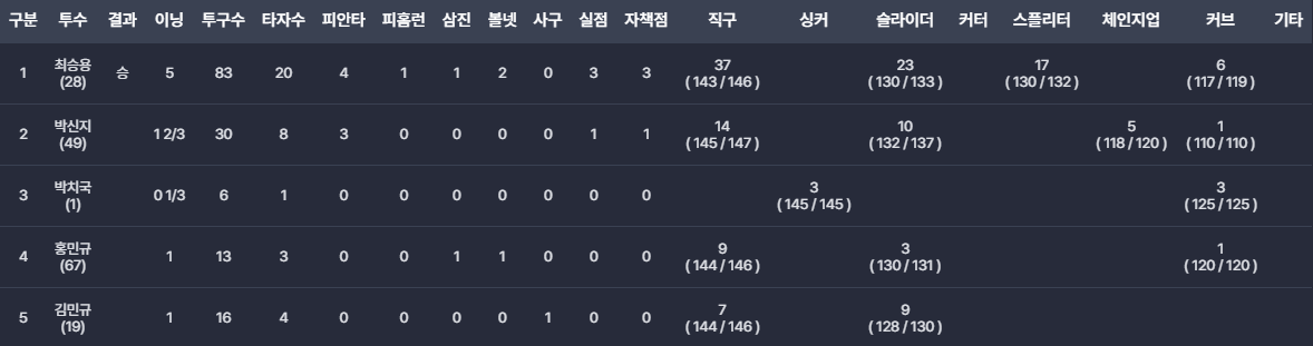 - 박신지 : 이동현 해설자의 말처럼 2이닝정도 맡아줄수 있는 불펜이 되기를 기대합니다.