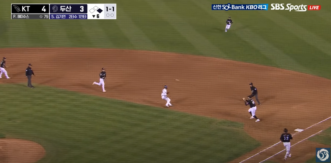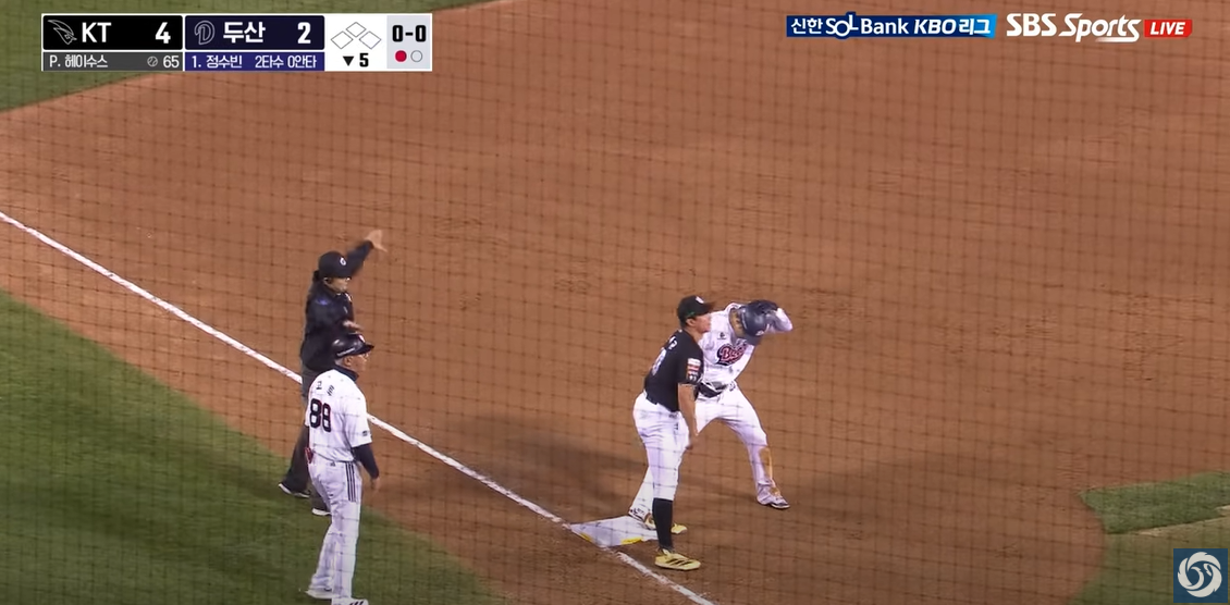 - 강승호: 5회말 선두타자 안타와 주루플레이로 득점 기회를 만들었습니다.