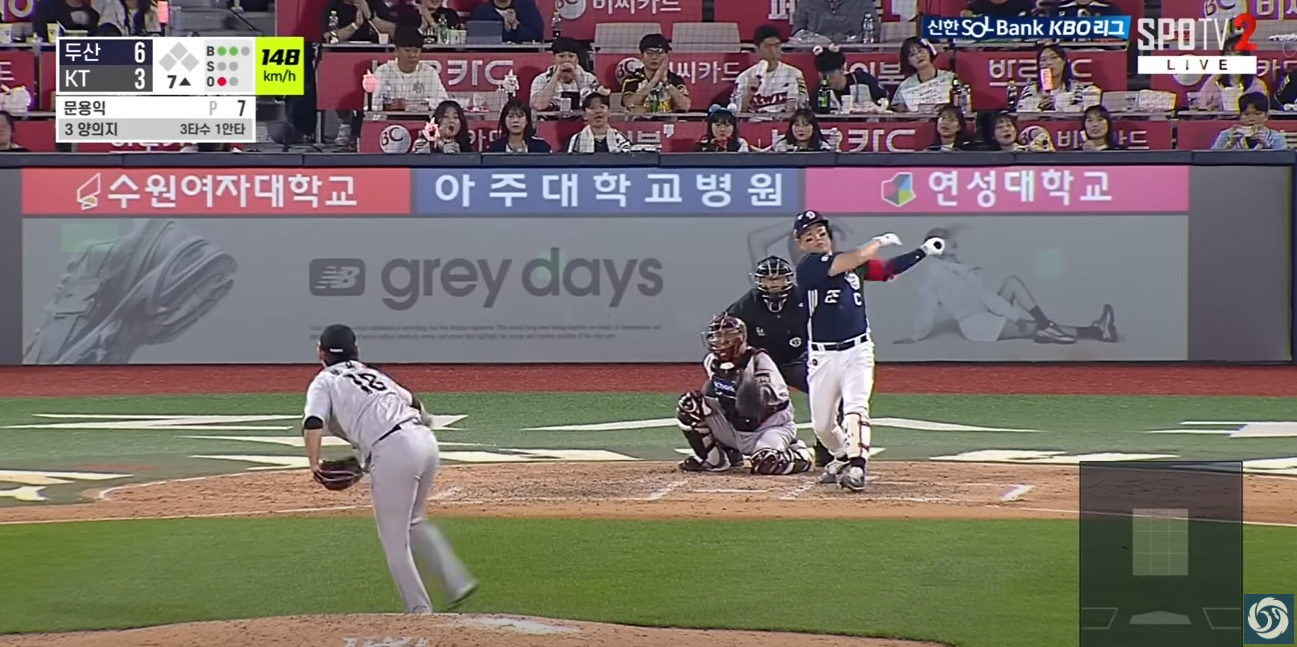 - 3회초, 양의지의 좌월 솔로 홈런으로 5-0, 5회 김재환의 적시타로 6-0까지 달아나며 승기를 굳혔습니다.