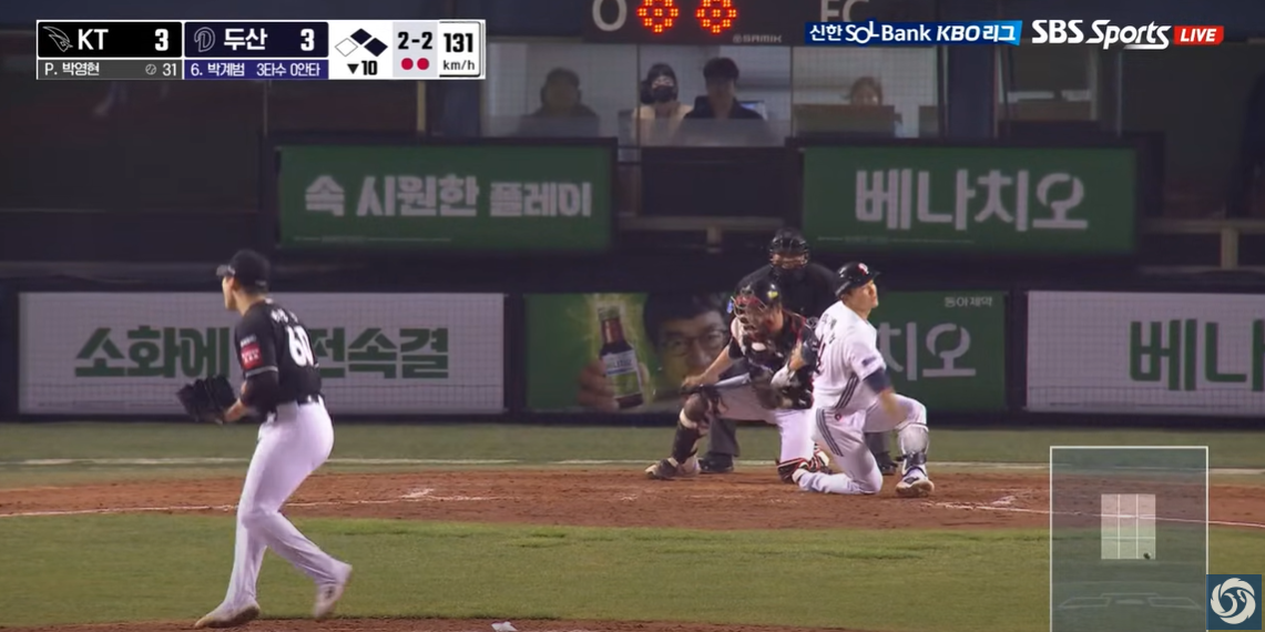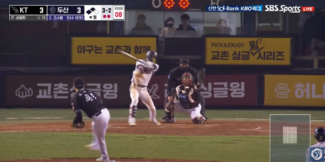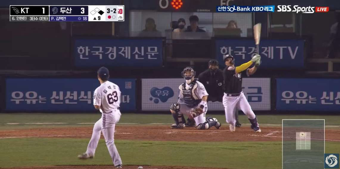 - 강승호: 부진하지 않았더라면, 희생타 정도 외야로 보낼 수 있는 선수인데...신인에게 대타의 자리를 내주었습니다.