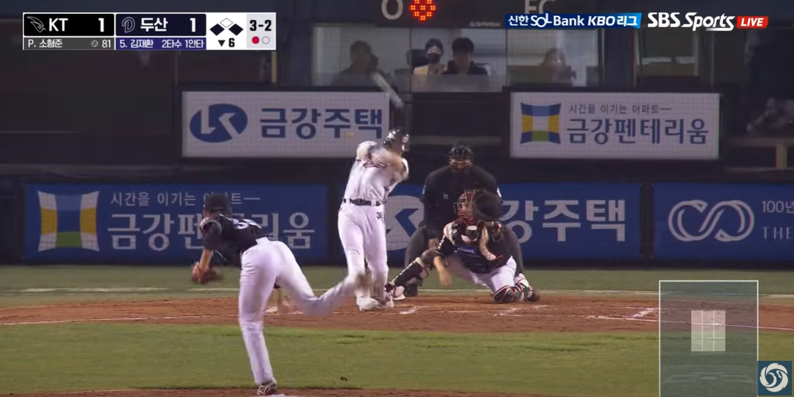 - 6회말 김재환의 역전 2타점 2루타: 1-1로 맞선 6회말, 김재환이 우중간을 가르는 2타점 2루타를 터뜨리며 두산이 3-1로 앞서 나갔습니다.