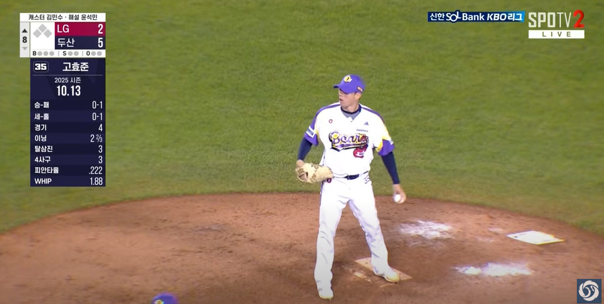 - 7회~8회 LG 추격 저지: 8회초 2사 만루 위기에서 두산 불펜이 대타 오지환을 좌익수 뜬공으로 잡아내며 추가 실점을 막아냈습니다.