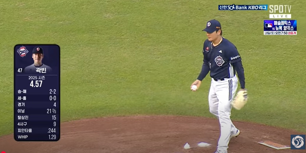 | 콜드플레이어 | 곽빈 | 선발로 5⅓이닝 9피안타 7실점(6자책), 흔들리며 불펜에 부담을 줌 |