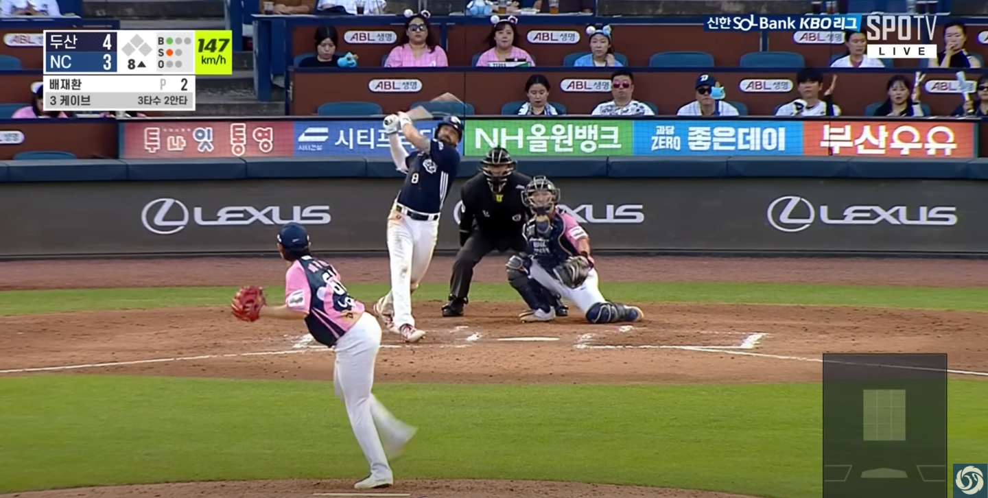 - 9회초 케이브의 2타점 2루타: 2사 만루에서 케이브가 2타점 2루타를 터뜨리며 승부에 쐐기를 박았습니다.