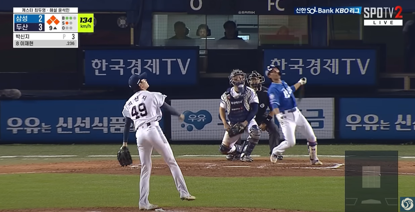 - 9회초 역전 만루홈런: 4-2로 앞선 9회초, 두산은 연속 안타와 볼넷으로 무사 만루 위기를 자초했고, 대타 이재현에게 만루홈런을 허용하며 4-6으로 역전당했습니다.