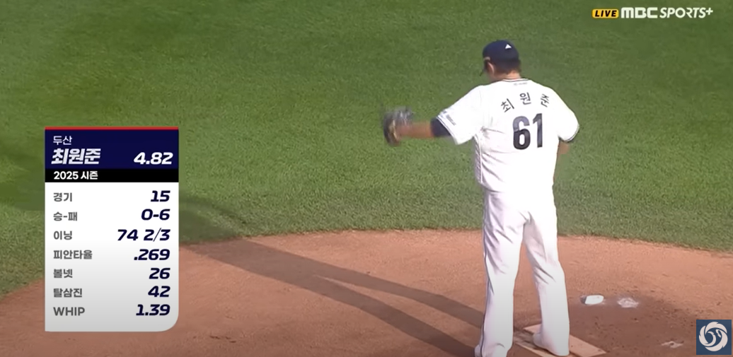 - 6회초 위기 극복: 최원준은 6회초 2사 1,2루 위기에서 실점 없이 이닝을 마무리하며 리드를 지켰습니다.