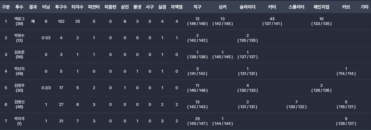 - 타선 침묵: 두산 타선은 단 2점만 기록하며 반격에 실패했습니다.
