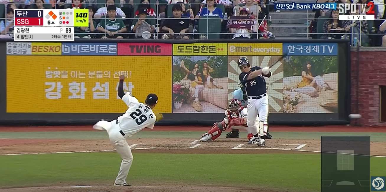 - 6회초 2사 이후 동점 : 오명진, 케이브, 양의지가 잇따라 안타를 때리며 1-1 동점을 만들었습니다.