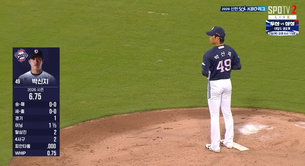 - 두산 불펜: 불펜이 강할것이라는 예상과 다르게 삼성의 추가 공세를 막지 못해 점수 차를 더 벌어지게 했습니다. 잭을 제외한 선발투수들이 계속 5회를 못채우면서 시즌초반부터 과부하일까요?