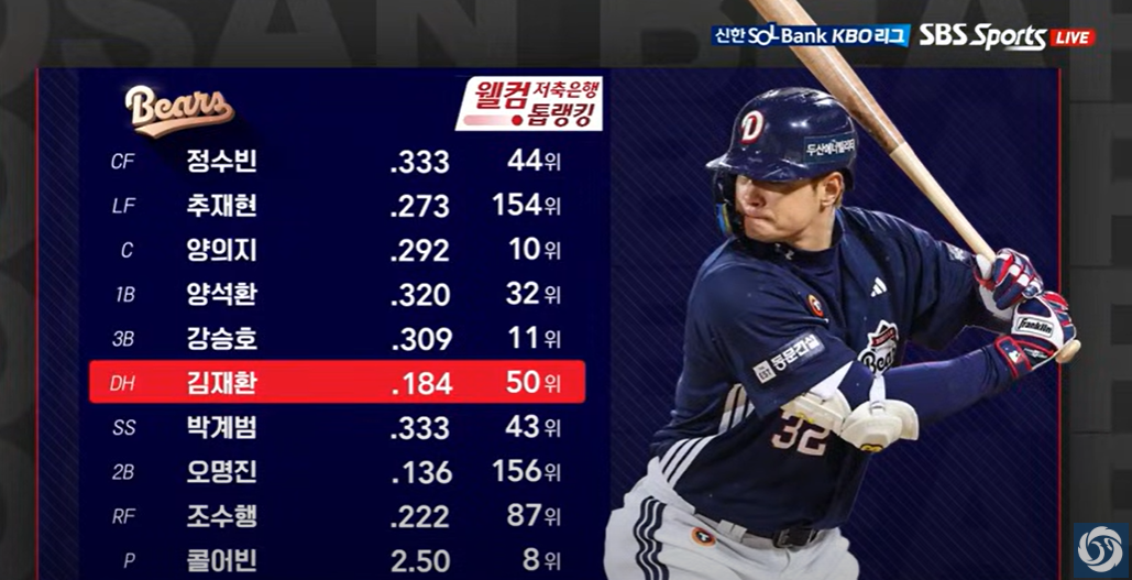 - 김재환 : 아직도 날씨가 김재환선수에게는 안맞는듯 합니다.