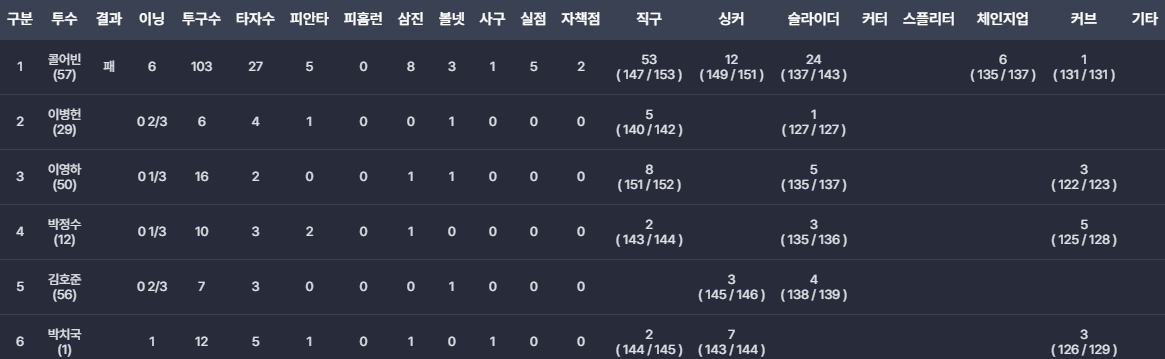 - 수비 실책: 콜 어빈의 포구 실책(양석환의 송구실책)이 한화의 대량 득점으로 이어졌습니다. 이는 경기 흐름을 완전히 바꾼 장면이었습니다.